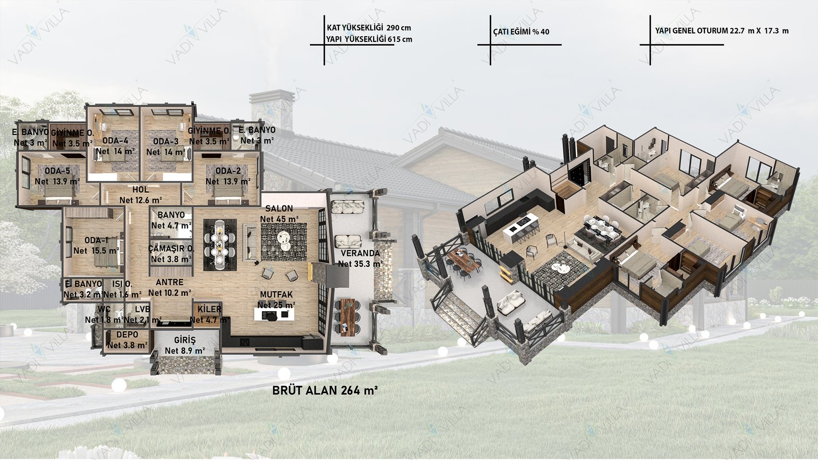 • Vadi Villa kalitesi ile üretilen tek katlı çelik villalar da güncel tasarımlar ve modern teknolojilerden istifade edilir.