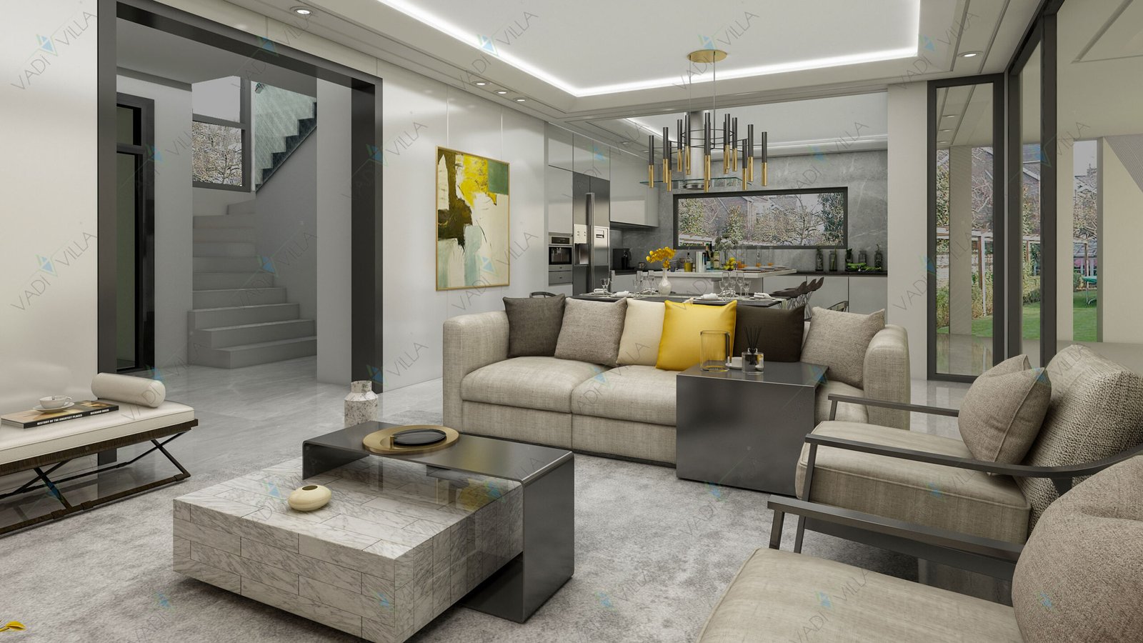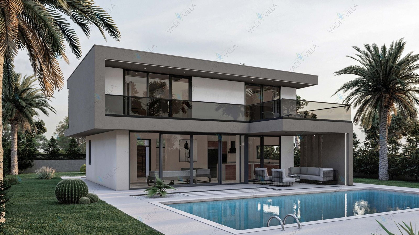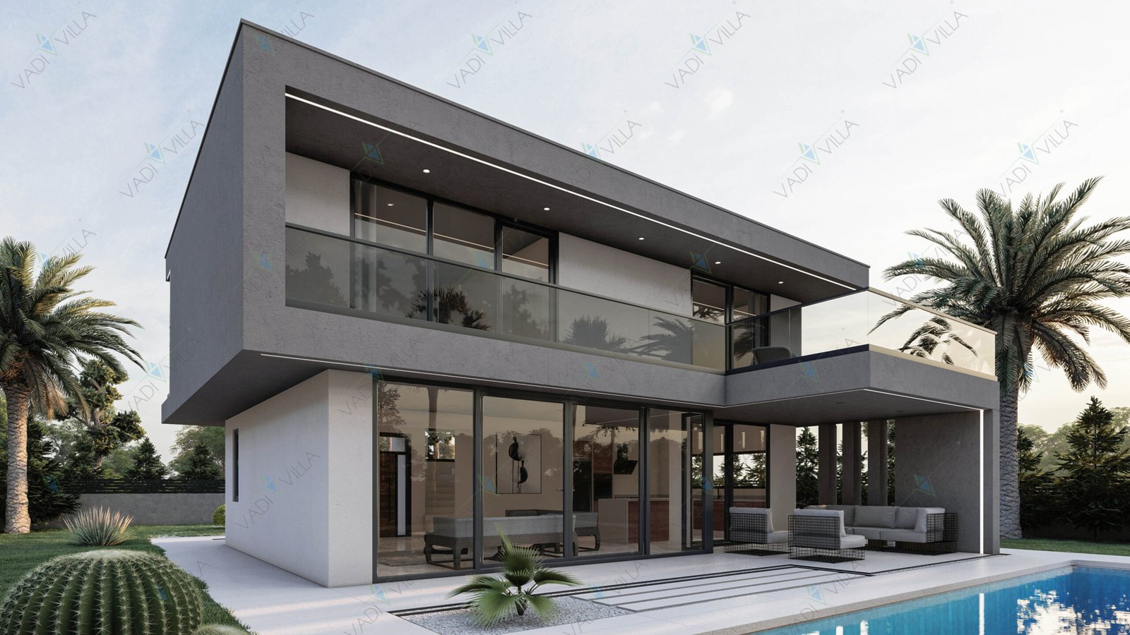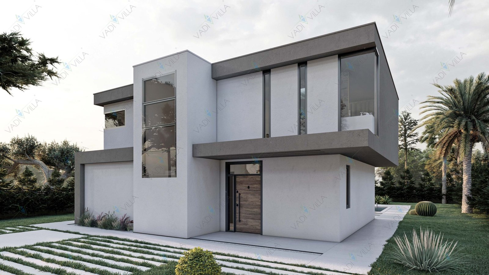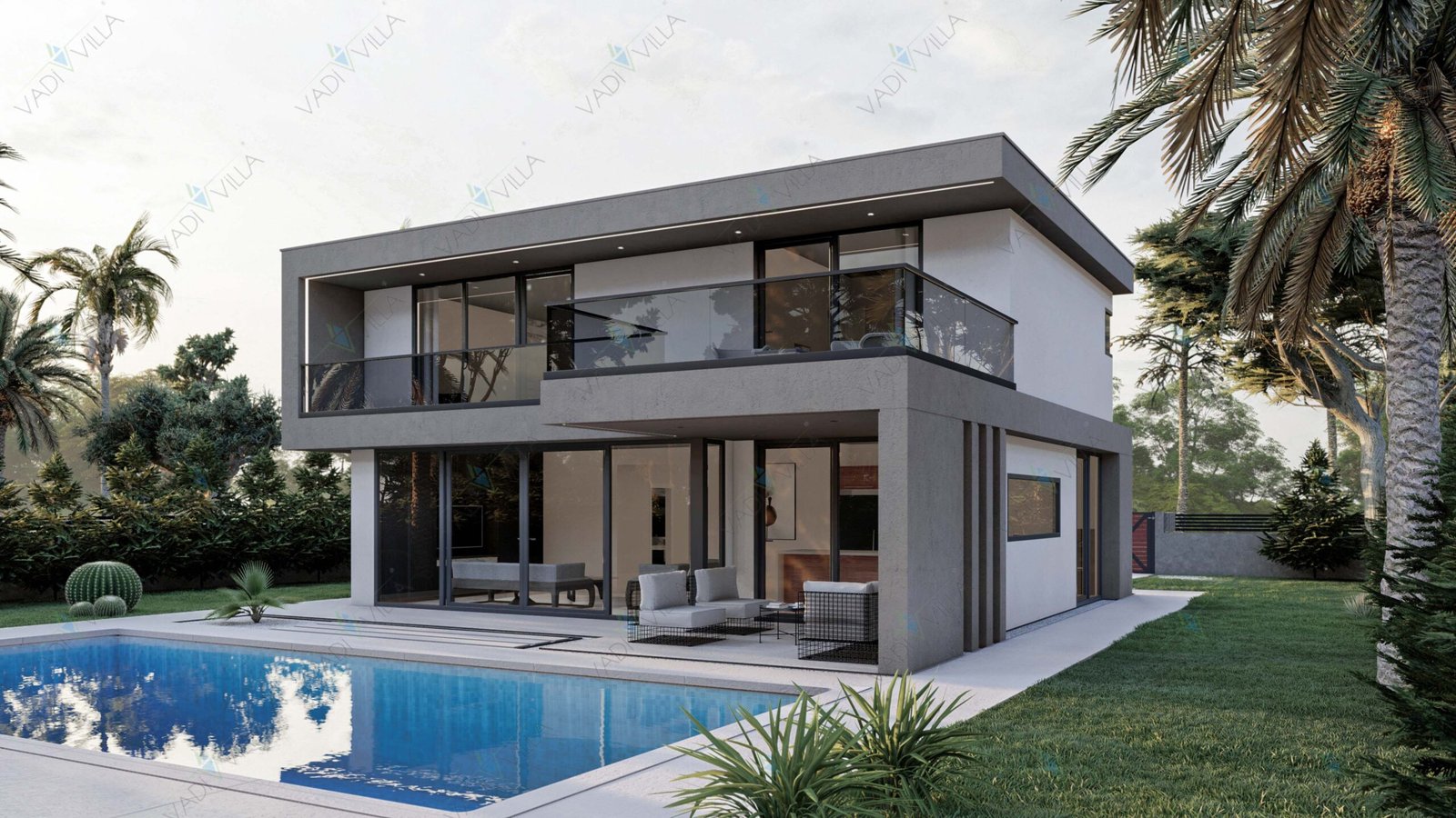 Minimalist dış cephe tasarımı, düz çatı formu ve geniş cam yüzeyleri sayesinde çağdaş bir mimari kimlik sunarken; fonksiyonel plan şeması ile uzun yıllar konforlu bir yaşam vaat eder.