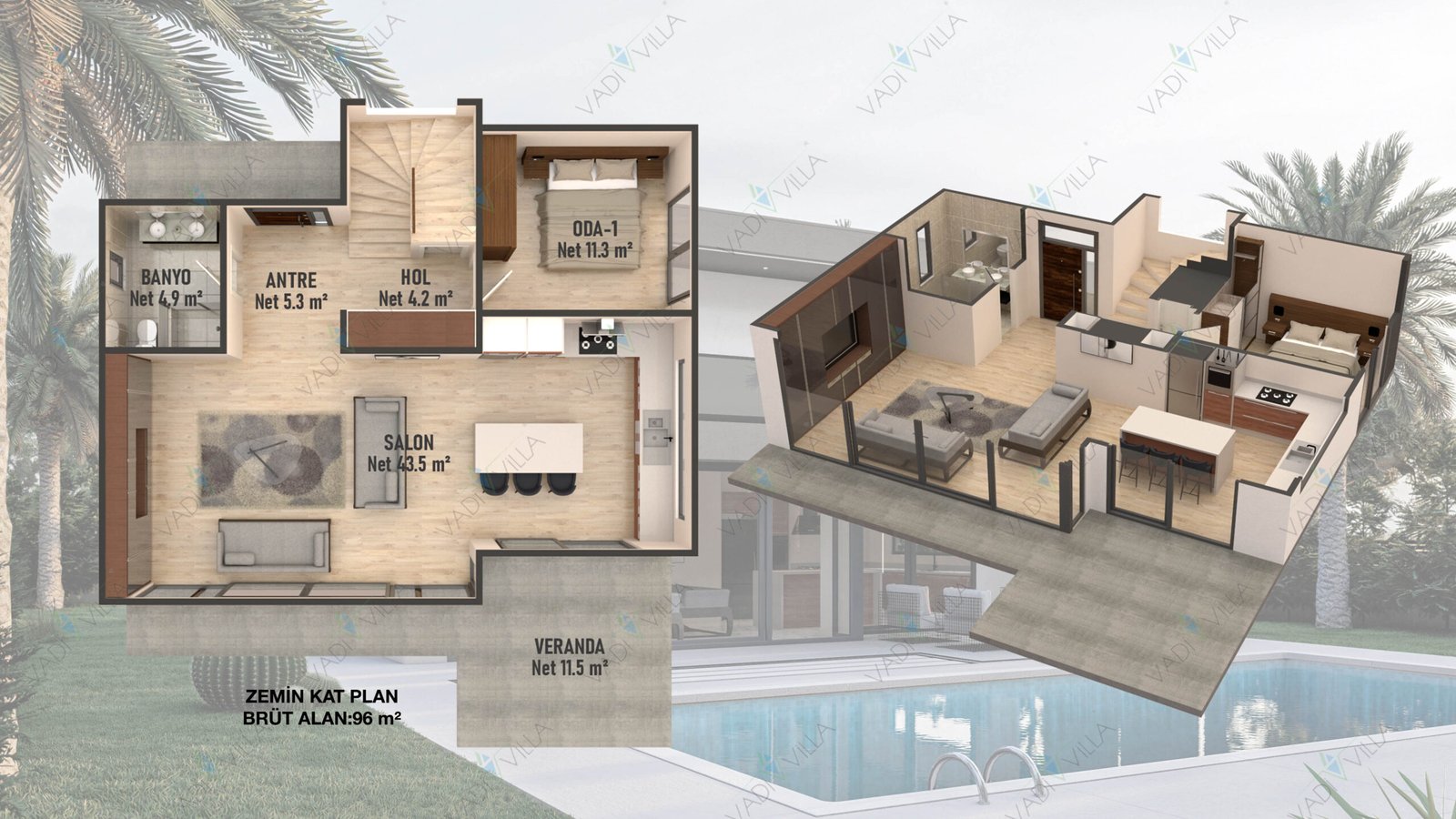 ✔ Havuzlu bahçe ile bütünleşik yaşam