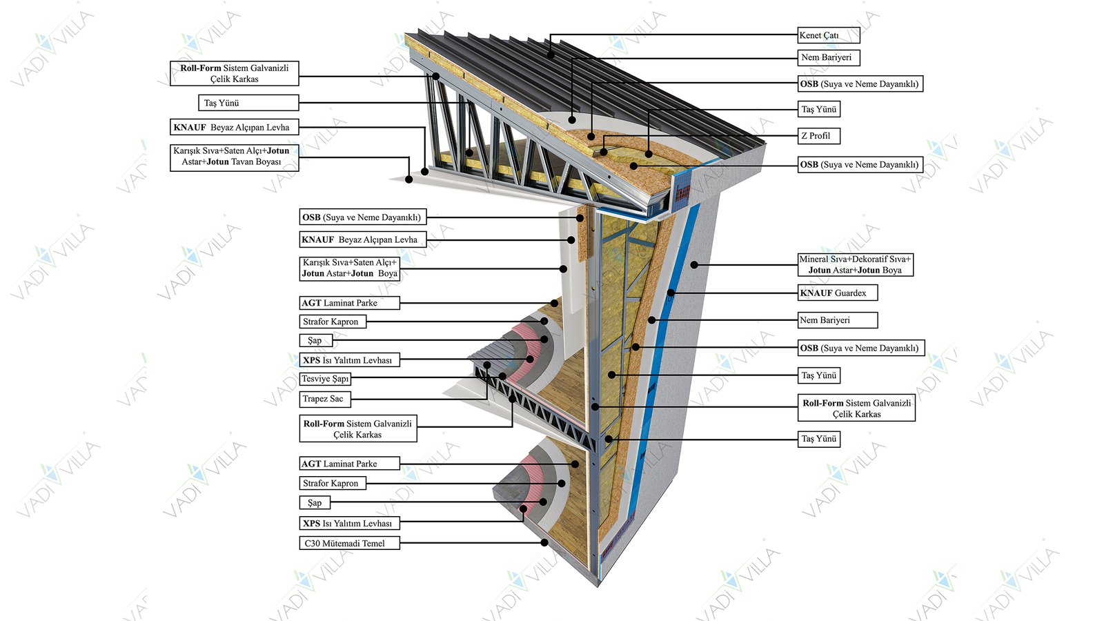 Vadi Villa, modern çift katlı çelik villa modelini Türkiye’nin dört bir yanında uygulamaktadır. İstanbul, Bursa, Mersin, Ankara, Antalya, İzmir gibi büyükşehirler başta olmak üzere kırsal bölgelerde de zemin ve iklim koşullarına özel mühendislik çözümleri ile projelendirilmektedir.