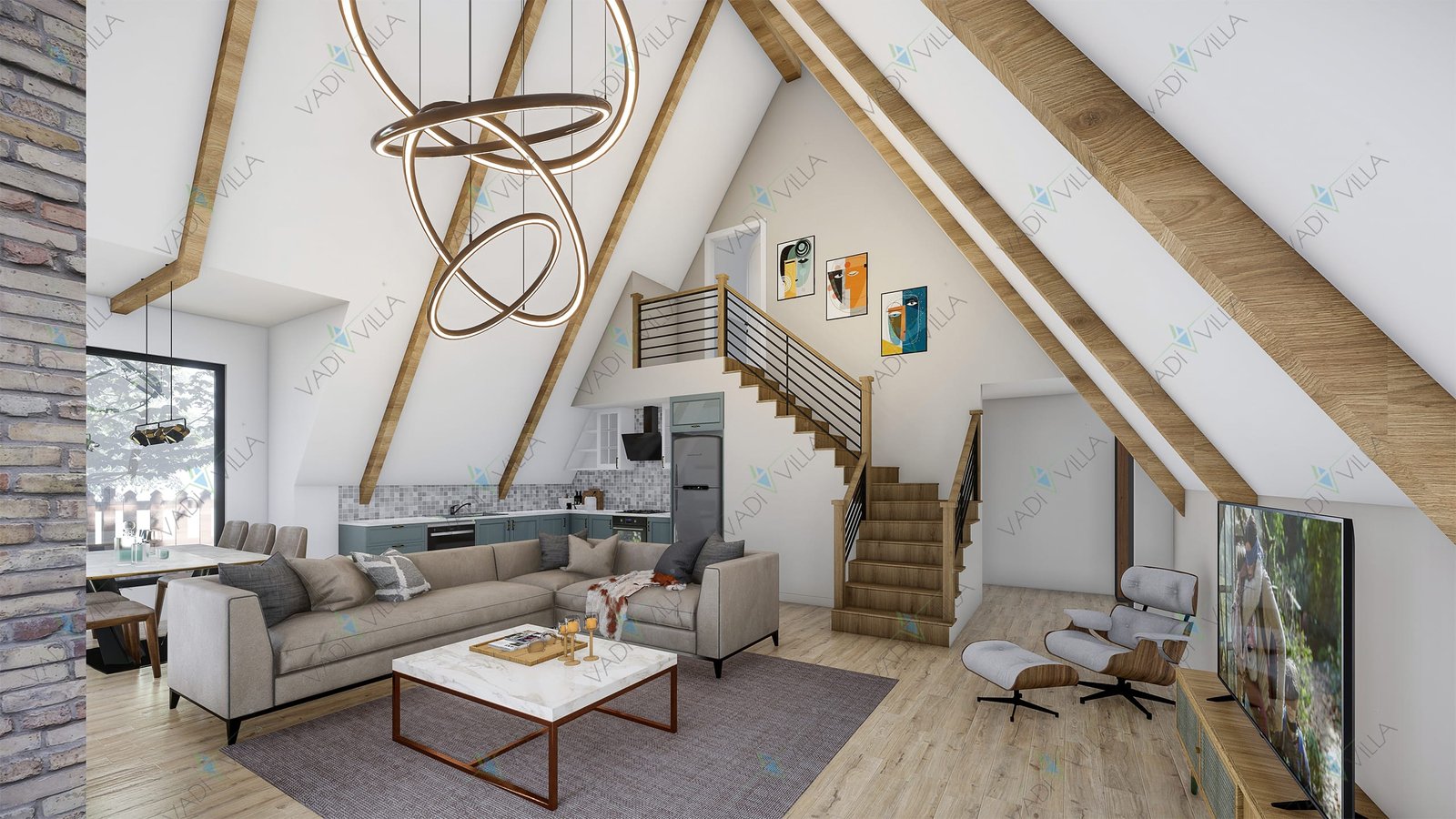 • Kat Planı: Zemin kat + çatı (loft) katı